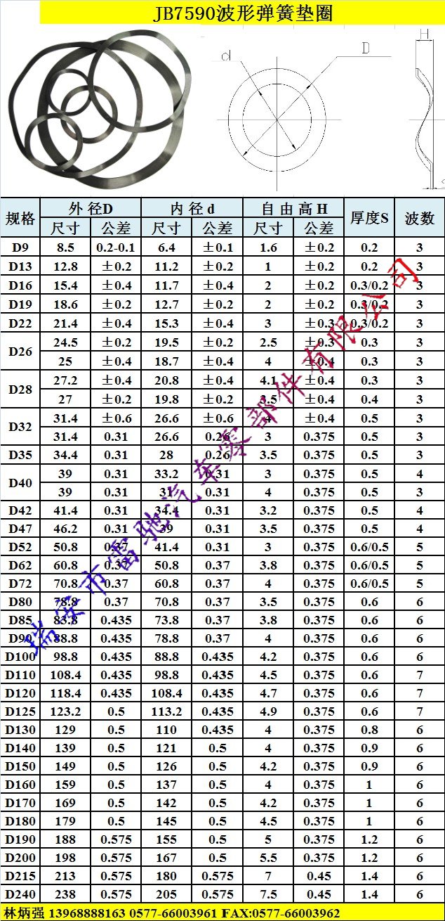波形彈簧墊圈 (波形墊圈) | JB7590 | 65Mn、60Si2Mn、 不銹鋼、鈹青銅、錫青銅 | 發(fā)黑、電鍍、本色 |